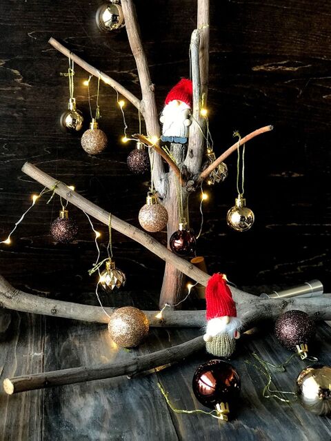 節約インテリア 木の枝でクリスマスツリー第二弾 大きめの枝でゴージャスに クリスマス オーナメント クリスマス デザイン ディスプレイ クリスマス デコレーション